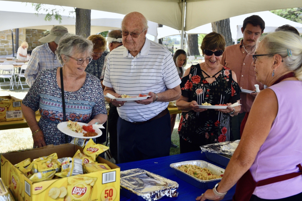 A BBQ picnic lunch followed worship service, and for a reasonable fee was provided to those attending who signed up online. Lunch featured grilled hamburgers, bratwurst, and hotdogs grilled by volunteers Dan & Stephanie Nieulandt. The sides were prepared by Marilyn Treharne, and the lunch was served by volunteers of the congregation.